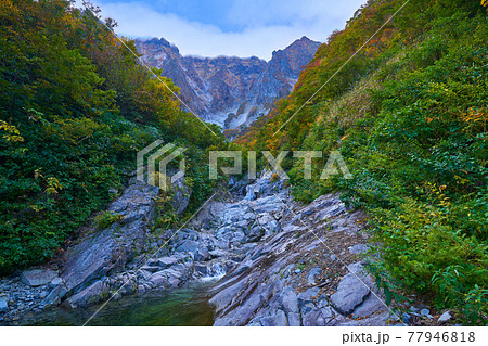 秋の群馬県みなかみ町の一ノ倉沢から谷川岳方面