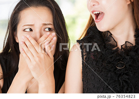 スマートフォン・耳打ちする男性に驚く女性