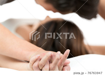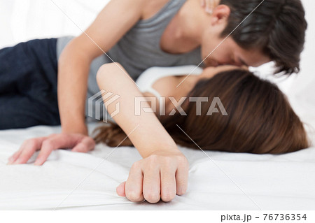 ベッドでキスするカップル
