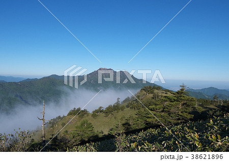 瓶ヶ森 登山道から石鎚山を眺める 夏 (四国 愛媛県)