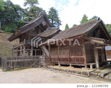 本殿は現存する日本最古の大社造りで国宝の島根松江大庭町にある神魂神社、かもすじんじゃ、拝殿本殿
