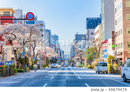 日本の東京都市景観 日本橋の人形町通りの商店街などを望む