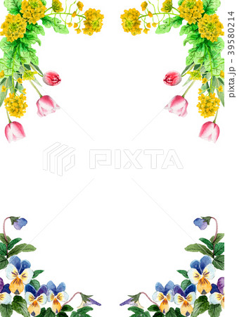 水彩で描いた春の花のフレーム素材