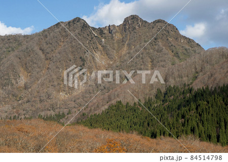 鳥取県の大山(だいせん)と烏ヶ山を南東側から望む
