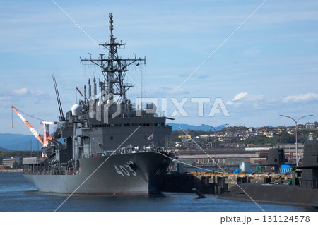 【広島県】晴天の海上自衛隊 呉基地に停泊する大型護衛艦 かが