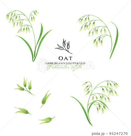 オーツ麦の水彩カラーイラスト(緑)