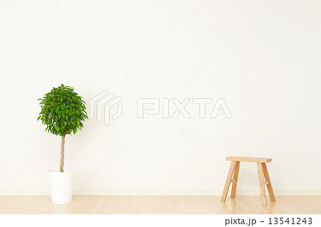 ナチュラルなインテリアの室内。何もない白いテーブルの背景テクスチャー