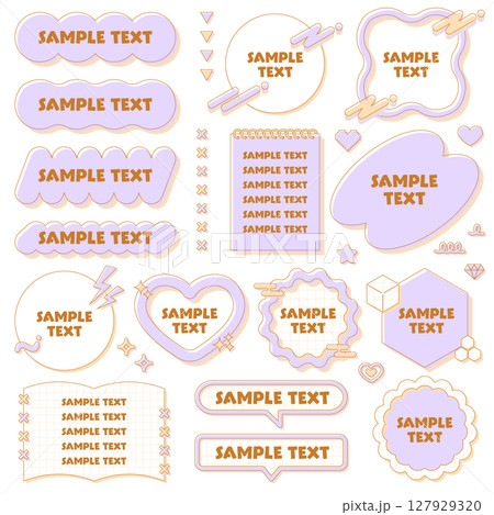 ゆるふわで可愛いy2kフレームセット 装飾 飾り枠 ファンシーポップ オレンジ 紫