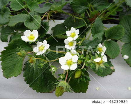 収穫された苺と苺の花 果実 苺 フルーツ 作物 フード