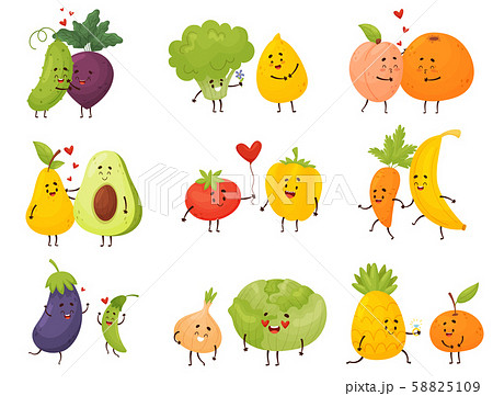 Set of different cartoon vegetables and fruits. Vector illustration on a white background.