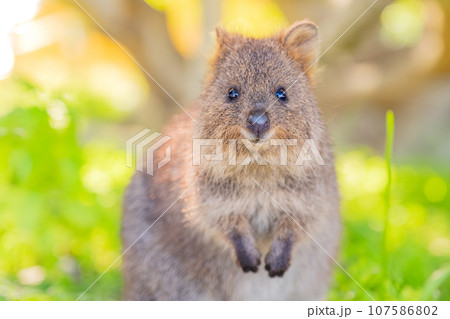 幸せな動物クオッカがあなたの顔にウインクして微笑んでいる(西オーストラリア州ロットネスト島)