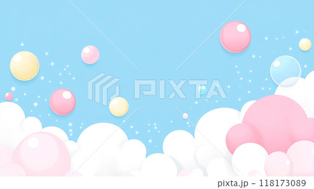 ピンクのシャボン玉と雲の可愛い背景