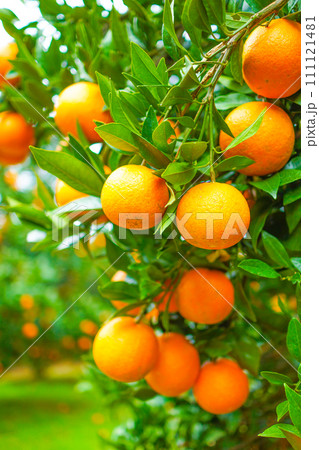木に実ったみかん ミカンの木 みかん畑 柑橘果物