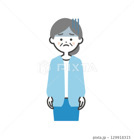 どんよりした表情の帽子をかぶってエプロンを付けた女性イラスト