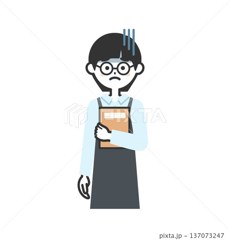 暗い表情のバッグを脇に抱えたジャケットスタイルの女性イラスト