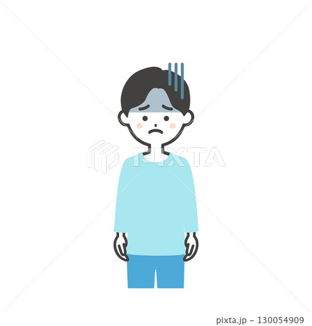 涙を流すスクラブに白衣姿の男性医師イラスト