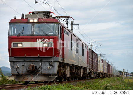 東海道連絡線を走るEF652084コンテナ貨物列車