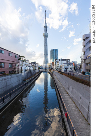 東京スカイツリー 北十間川に架かる西十間橋(にしじゆっけんばし)からの風景