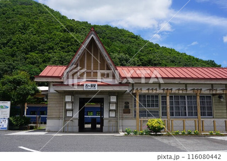 岡山県美咲町で廃線となった片上鉄道で保存されている吉ヶ原駅駅舎(推薦産業遺産)