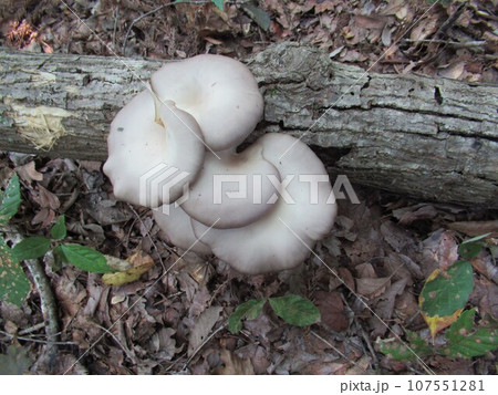 ひっそりとはえるキノコ「サクラタケ」(山梨県富士吉田市)