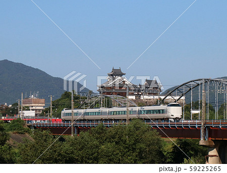 福知山城をバックに走る特急きのさき