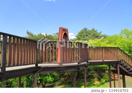 道の駅「おながわ」のきぼうの鐘と青空、宮城県女川町
