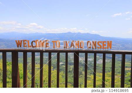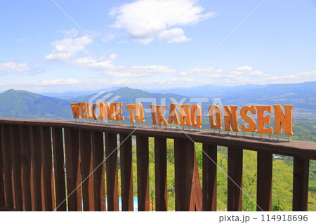 伊香保ロープウェイ 展望デッキの文字と輝望の鐘