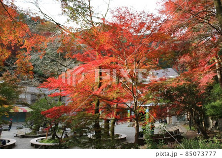 紅葉にいろどられた高尾山ケーブル清滝駅前
