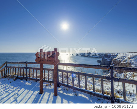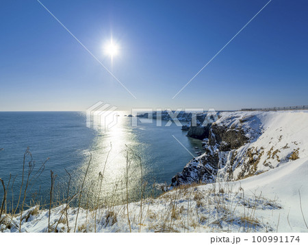 北海道・積雪のきりたっぷ岬と青い海 / Cape Kiritappu, Japan