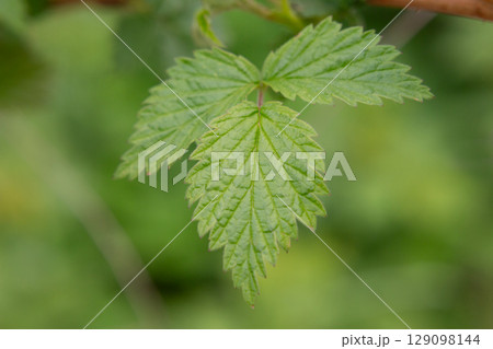 Raspberry leaves in the light of the setting sun. Green leaves
