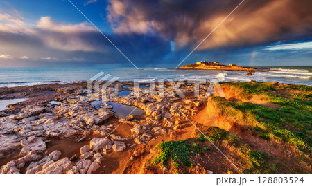 夕日に染まる渡慶次ビーチ 沖縄県読谷村
