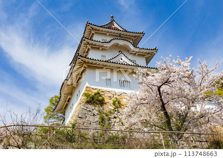 兵庫県明石市・桜が満開の明石城の櫓