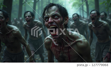 Fierce Expression in Front of Blazing Flames Creates an Intense and Dramatic Atmosphere