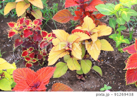 コリウスとガザニア、金襴紫蘇、勲章菊、花イメージ素材