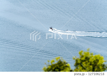 (長崎県)九十九島・佐世保湾に浮かぶ島々 水上スキーを楽しむ人達