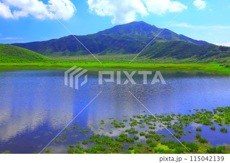 くじゅう長者原からの三俣山1745m タデ原湿原自然研究路 夏色のくじゅう連山 大分県九重町