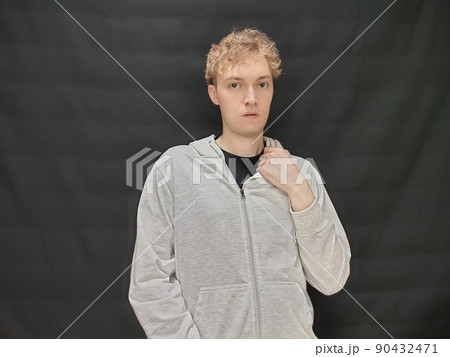 「顔に何かがついているかな」と気になっている男 外国人男性 黒バック