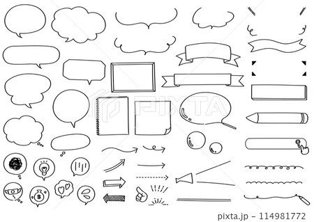 線画のシンプルで目立つ吹き出しとフレームのセット