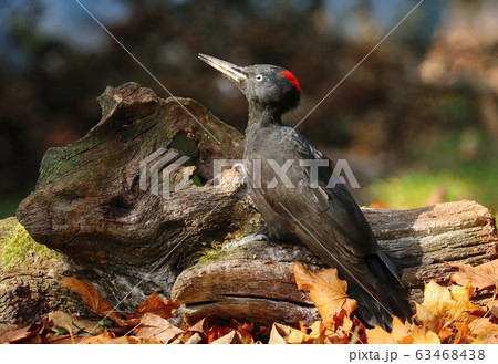 地上で採食する日本最大のキツツキ クマゲラ くまげら 熊啄木鳥 北海道野鳥