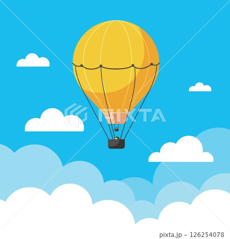 Hot Air Balloon Flying Above Clouds in Blue Sky Vector Illustration with Yellow Balloon