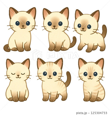 いろんなポーズのシャムねこ6体セット(ブルーの瞳が印象的なかわいいキャラクター)