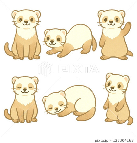 いろんなポーズのフェレット6体セット(やさしくて表情豊かな動物キャラクター)
