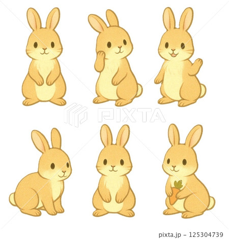 いろんなポーズのうさぎ6体セット(やさしくてかわいい動物キャラクター)