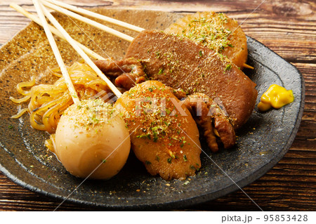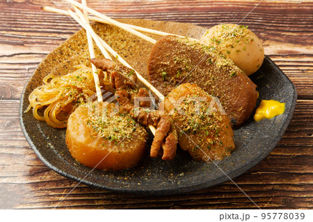静岡おでん(牛スジ、ホルモン、もつ、なると、はんぺん)