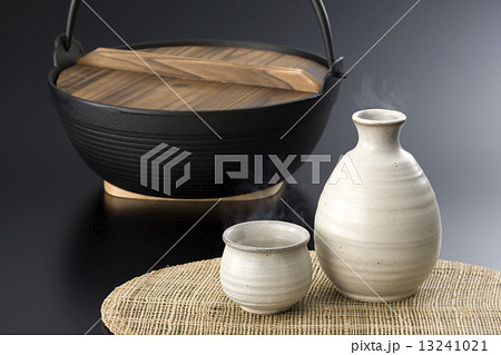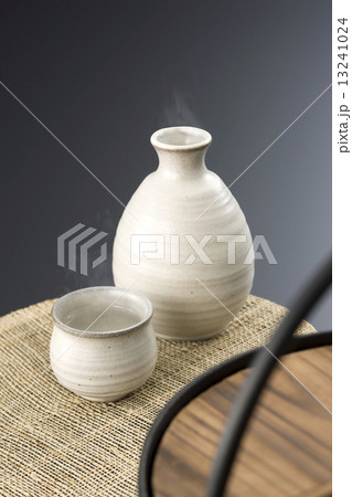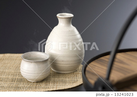 酒を注ぐ、熱燗の日本酒と酒器、徳利とお猪口