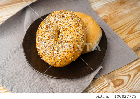 Bagel, Round Bread Bun, Wheat Bakery with Grains And Seeds for Breakfast, Plain Circle Bagel Bread