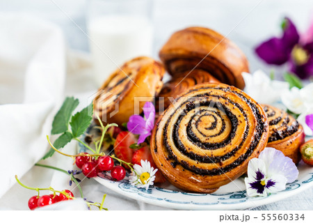 Fresh and tasty buns with with sesame and poppy seeds and roll w