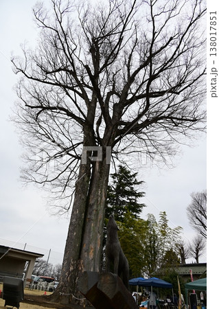 春めいた光芒の元の欅の大木