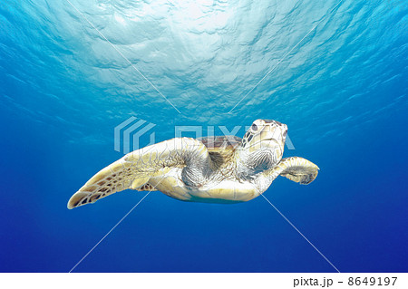 飛ぶように泳ぐアオウミガメ