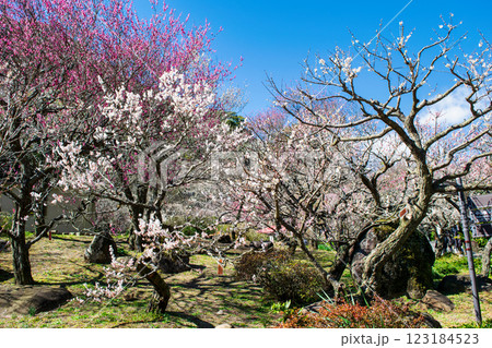静岡県熱海市 熱海梅園 梅園石碑付近の梅林 早咲きの梅